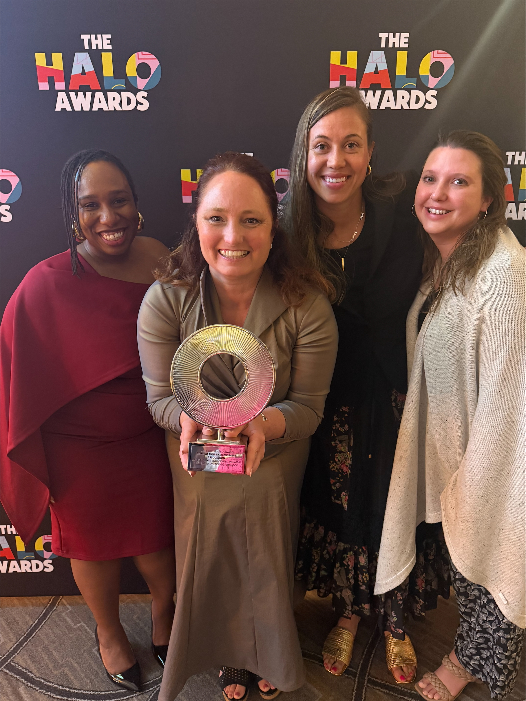 Gold Halo Award accepted by (left to right): Ashley Howard of Feeding America, Christy Duncan Anderson of Albertsons Companies Foundation, Beth Githuku of Alpenglow Impact and Eva Garred Doyle of No Kid Hungry.