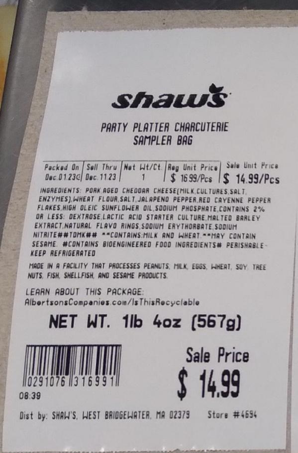 Party Platter Charcuterie Sampler Bag; Dietz & Watson