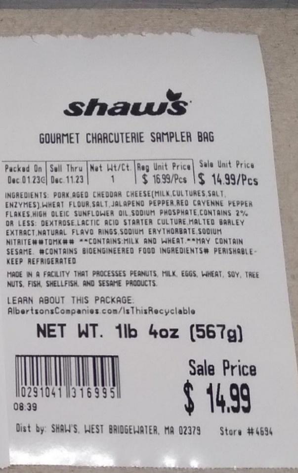 Gourmet Charcuterie Sampler Bag; Dietz & Watson