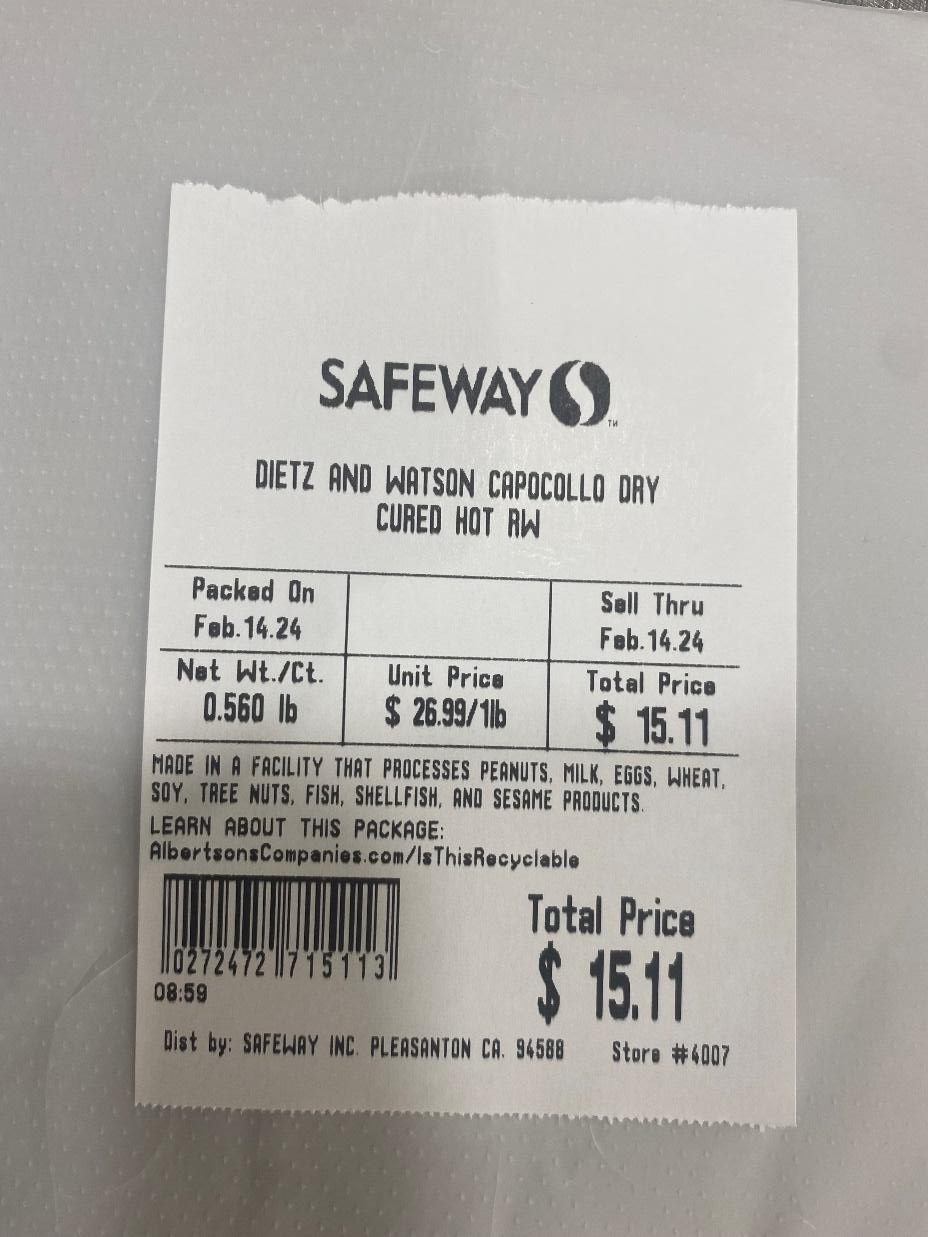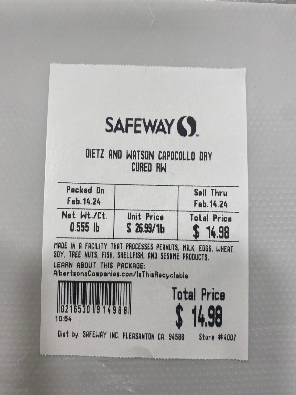 Dietz & Watson Capocollo, Dry Cured Sweet