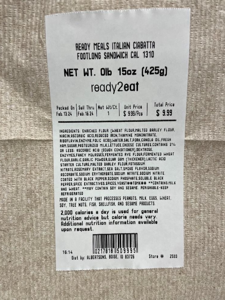 ReadyMeals Italian Ciabatta Footlong Sandwich